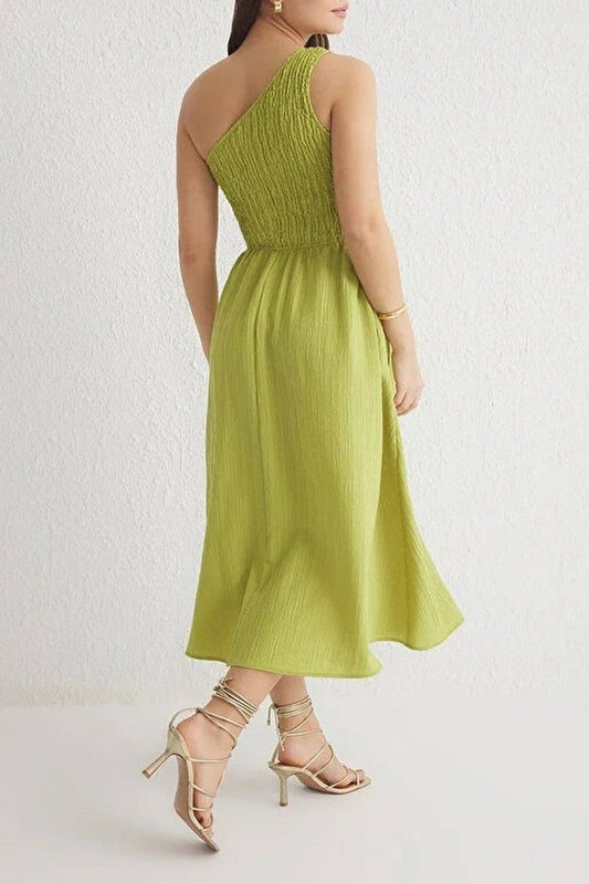 Chartreuse Smocked Midi Dress