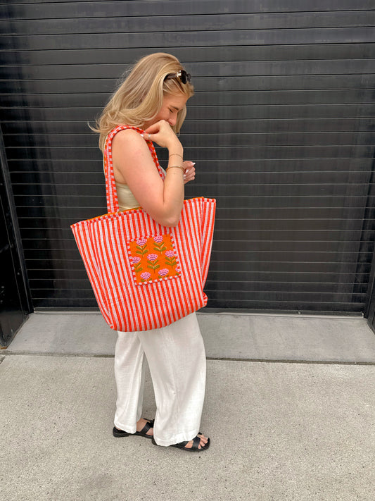 Marsha Kantha Quilted Boho Floral Reversible Tote Bag