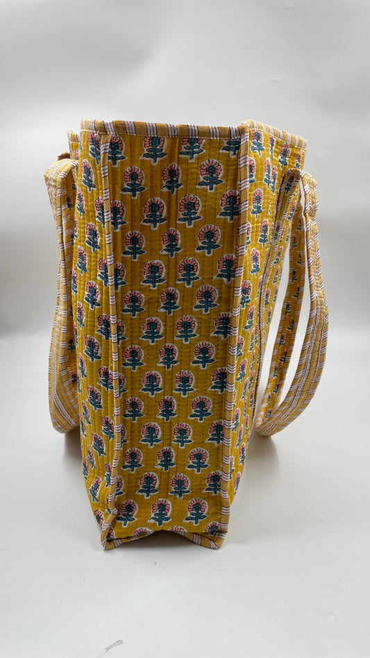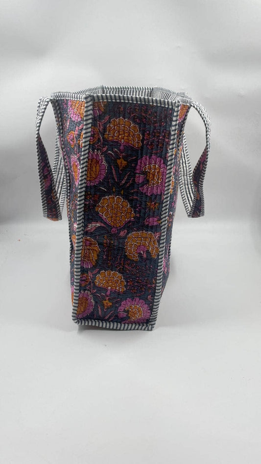 Boho Floral Kantha Quilted Reversible Tote Bag