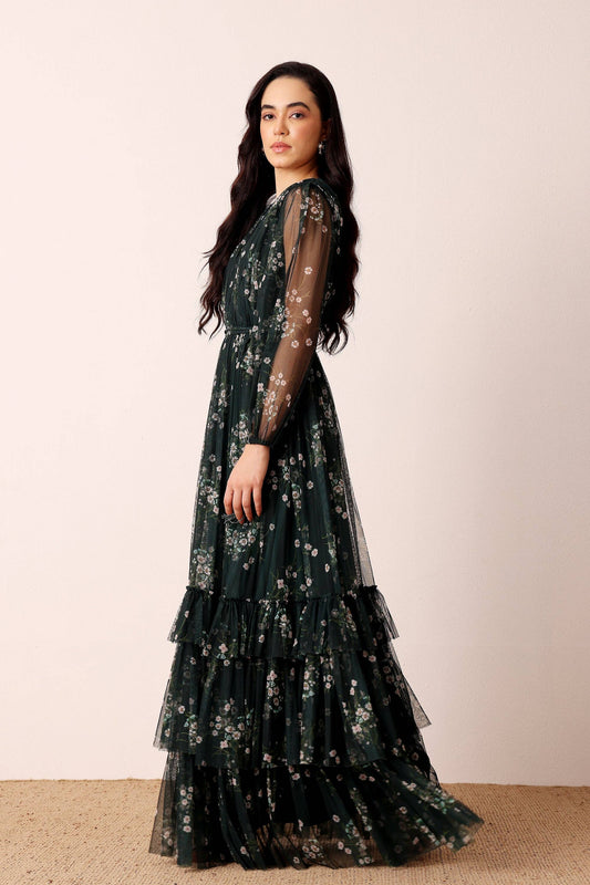 Rebecca Maxi Dress in Emerald Floral