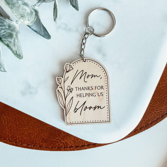 Mom Thanks For Helping Us Bloom Wooden Keychain