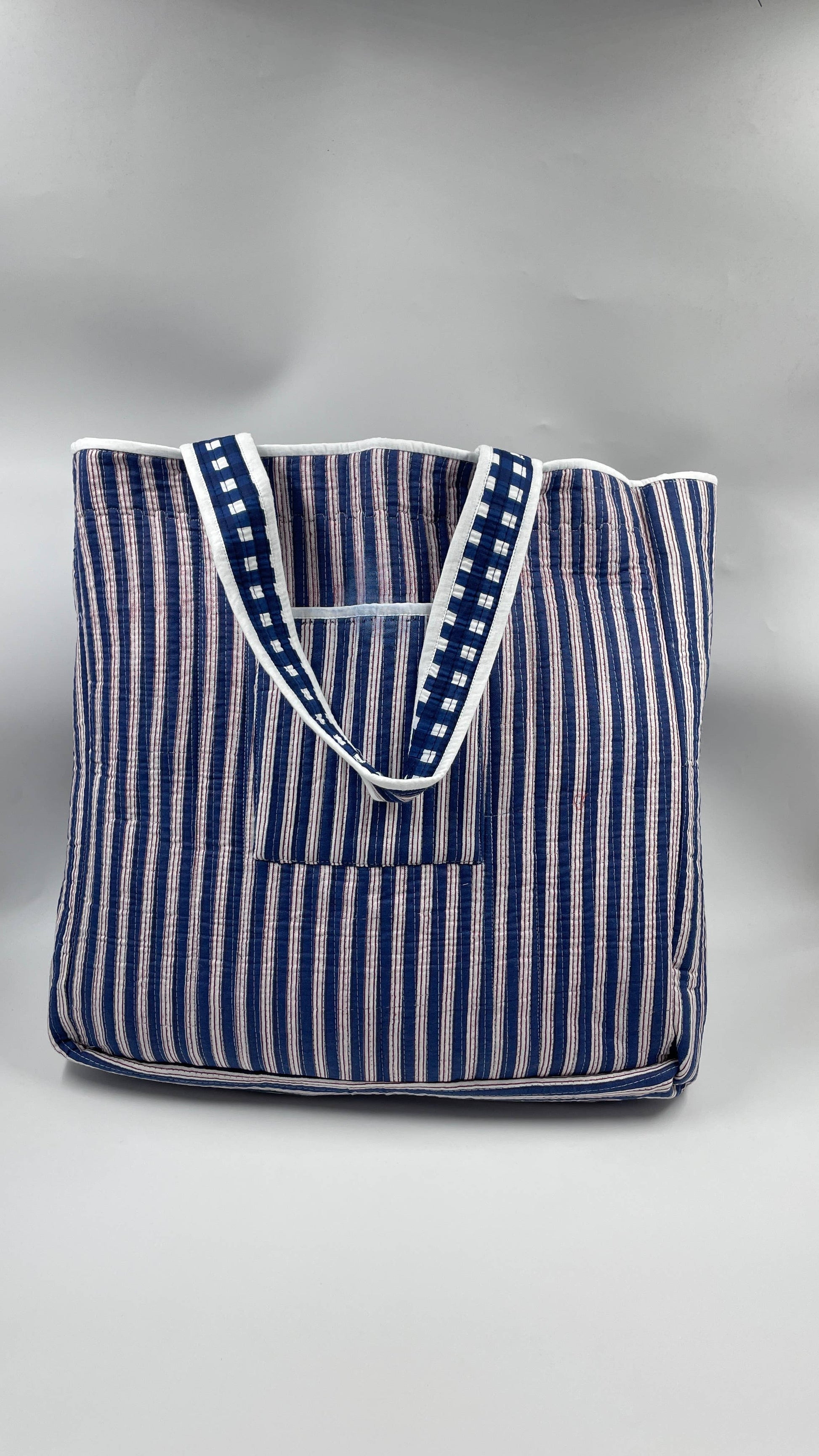 Navy Kantha Quilted Boho Box Reversible Tote Bag