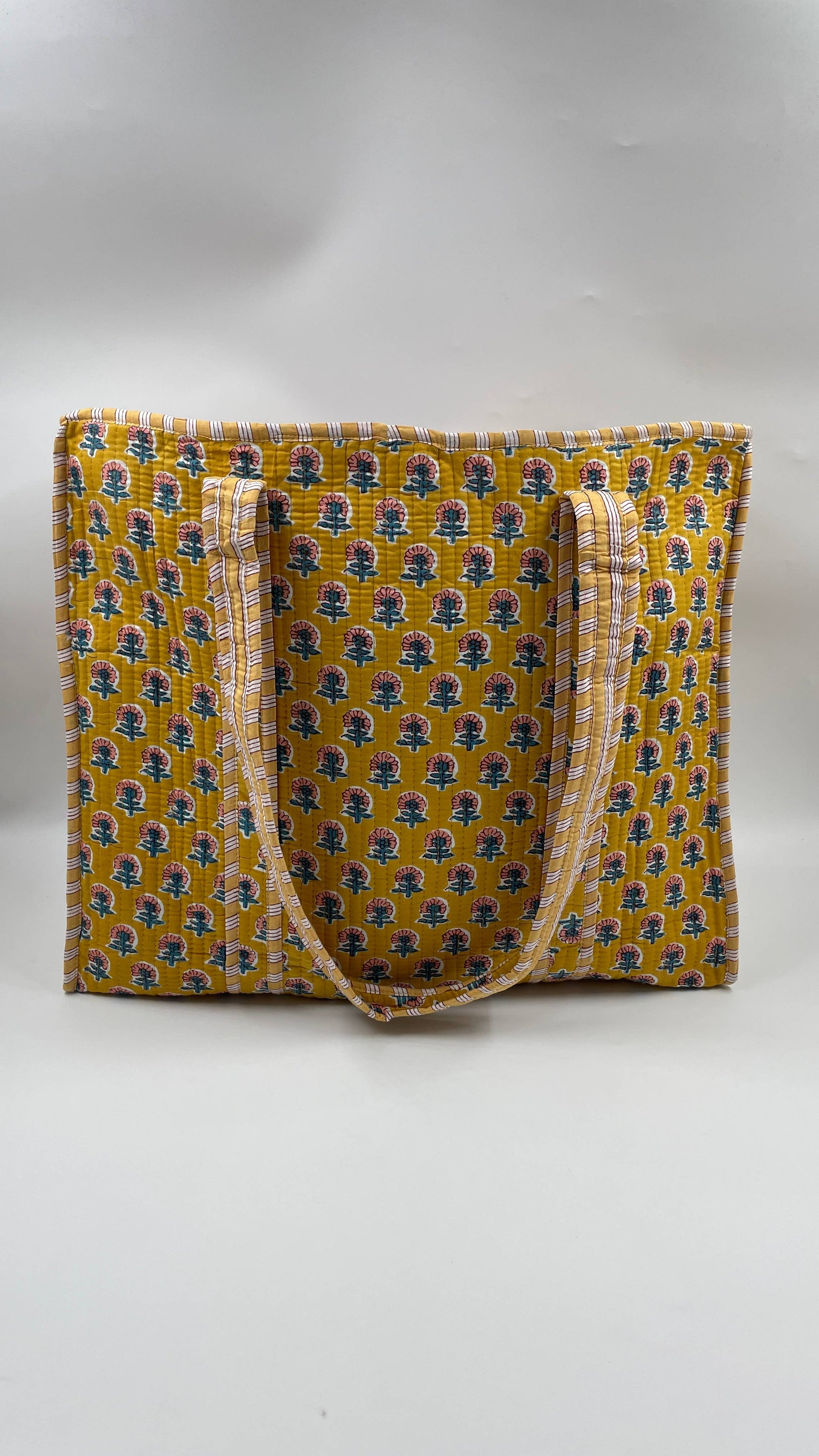 Handcrafted tote bags made in India Jaipur using the highest quality cotton with traditional block printing . The versatile totes are designed to accommodate all our essential whether you are heading for beach , university , holiday ,shopping or new mummy's . Good sized comfortable strap our tote bag offer ample of space and comfort for every day use