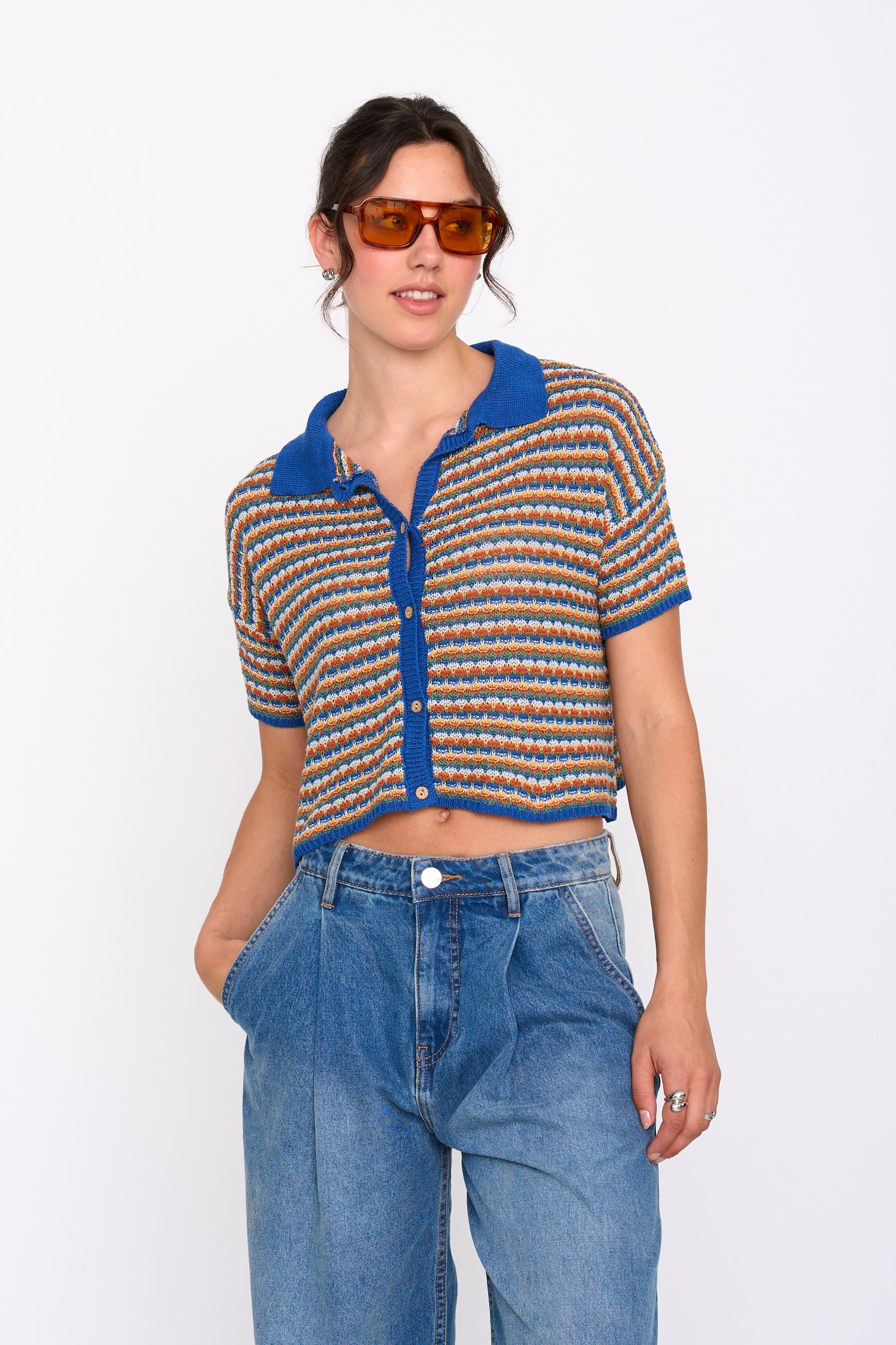 Button up polo top
