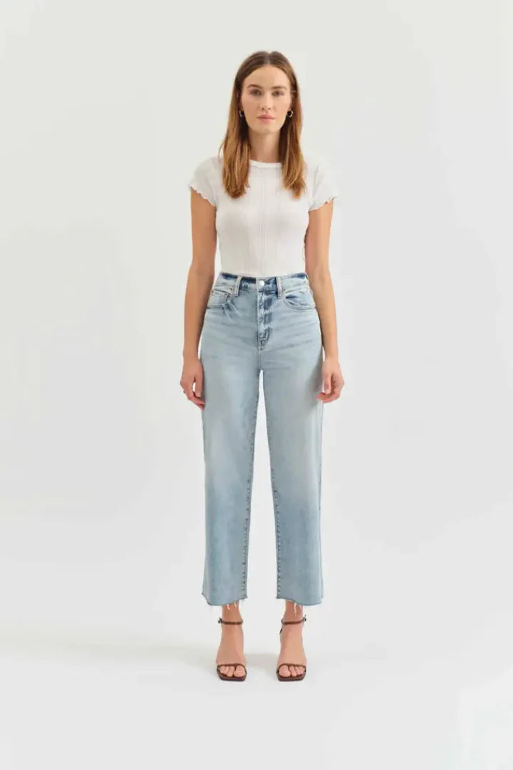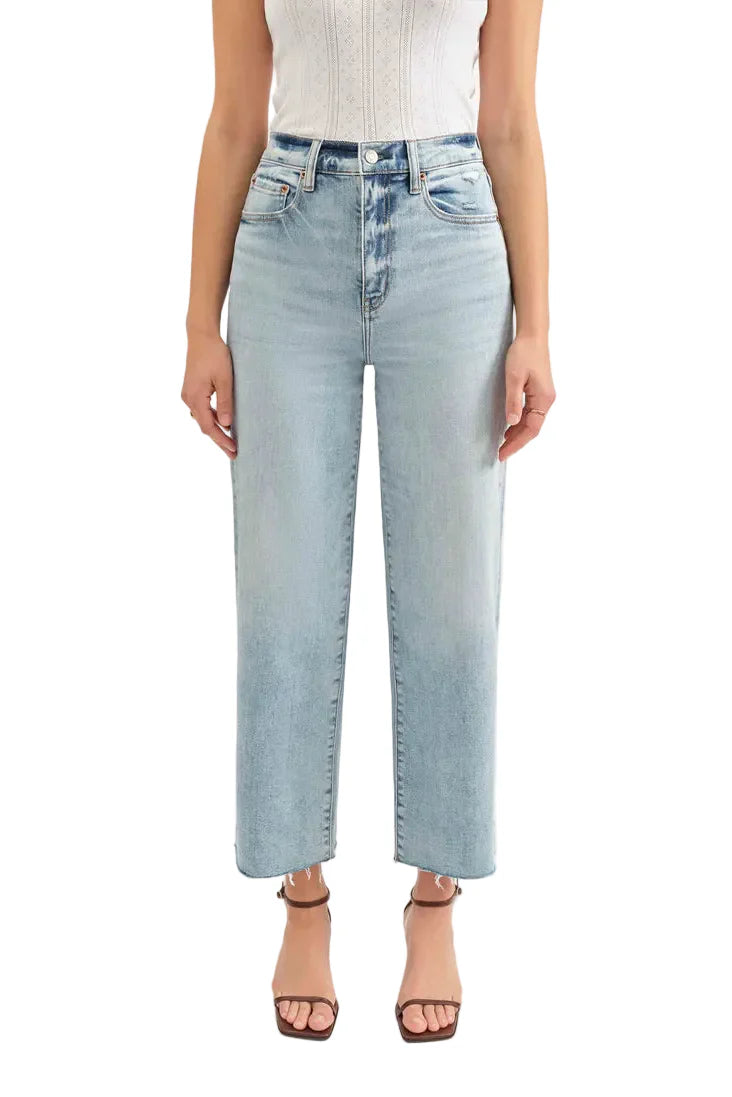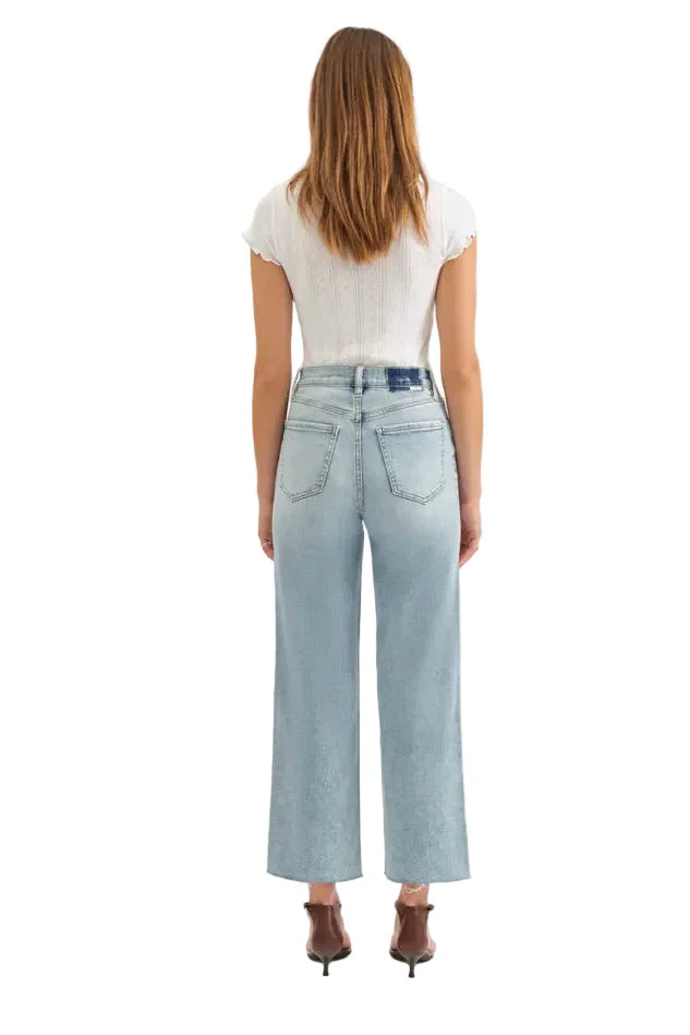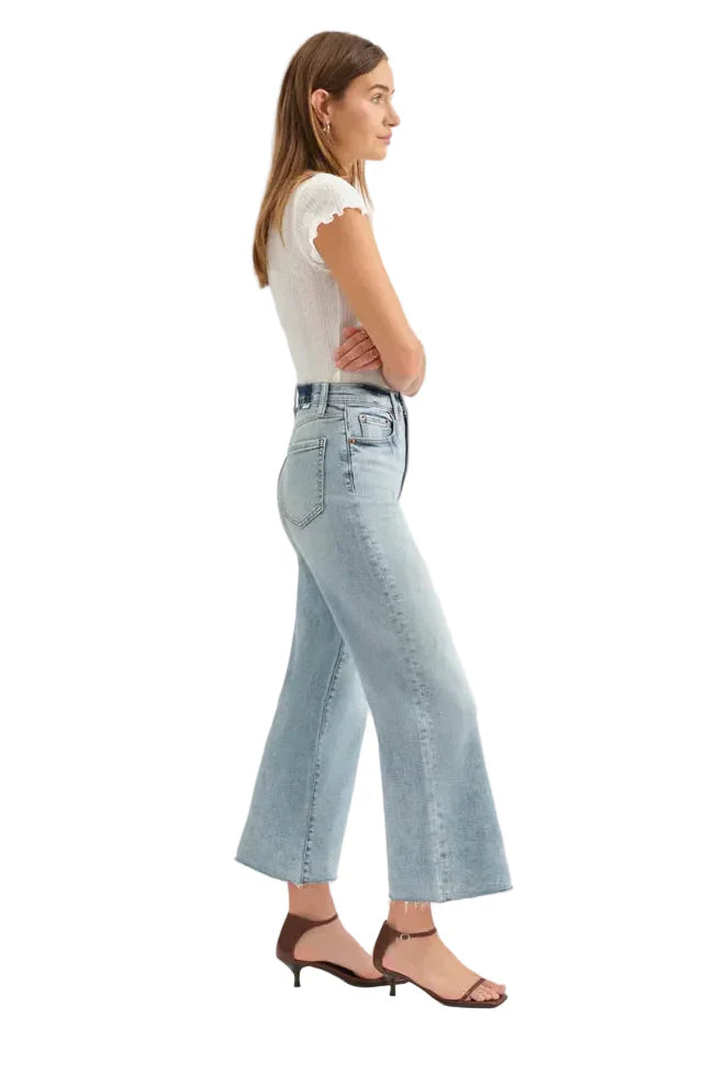 The Pleaser in Wide Awake is our tried and true high rise wide ankle, featuring scissor cut hems against a vintage-inspired medium wash. Constructed from our Hug fabric, this jean is flexible enough to hug your body and heavy enough to cinch you in.